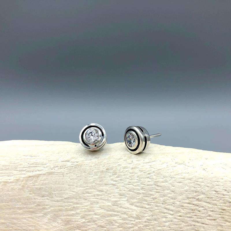 Elegante y sencillo pendiente realizado en plata de ley y circonita talla brillante de 4,75 mm. Un esencial en el joyero de una mujer actual y a la moda